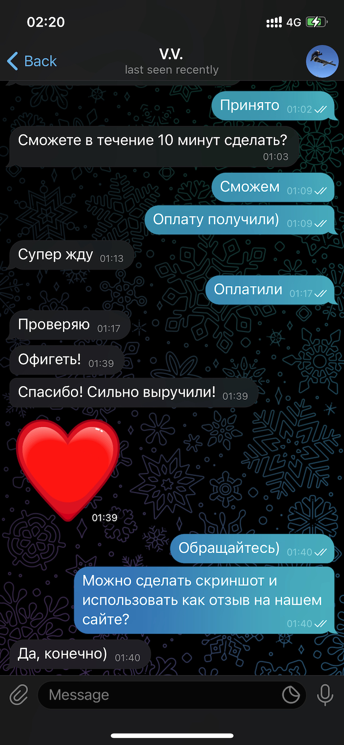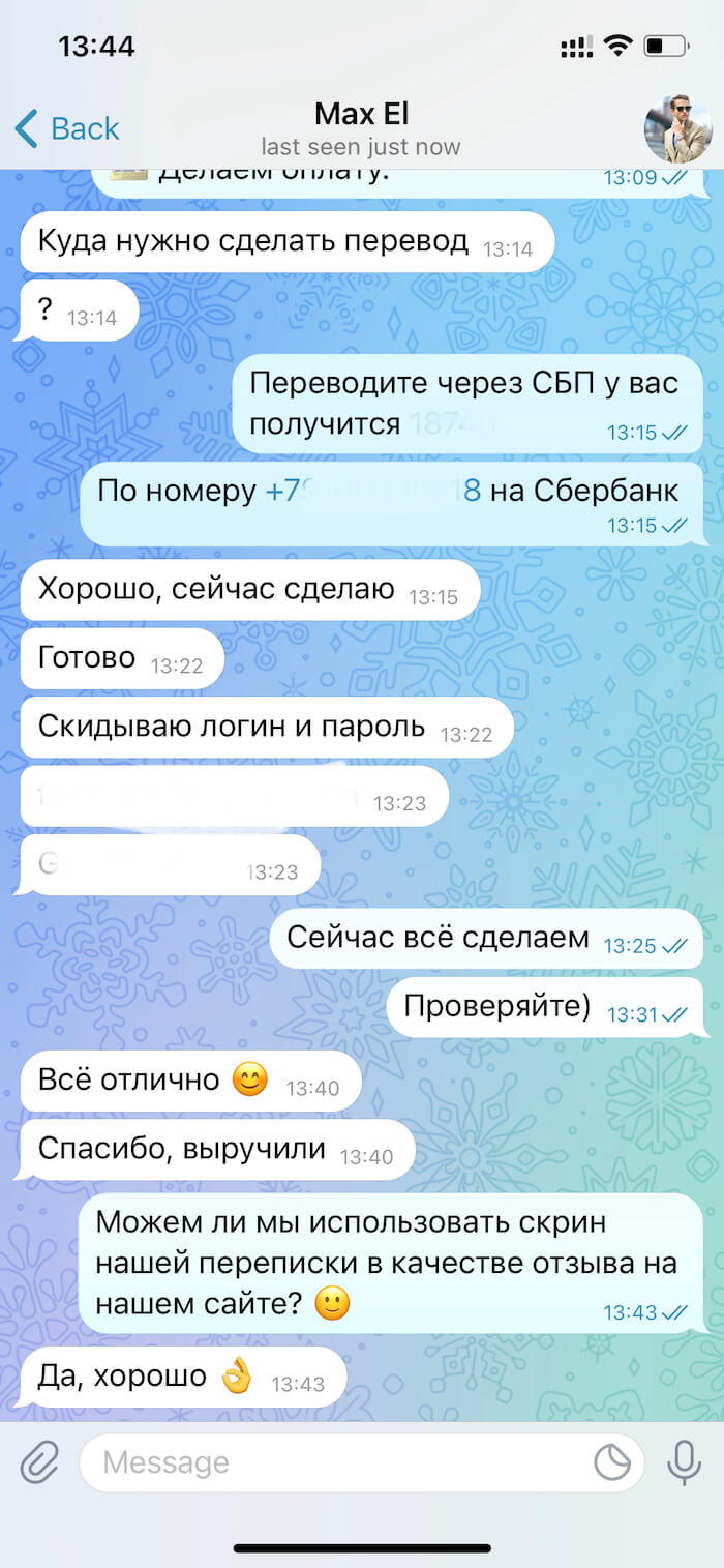 Обратитесь к нашему менеджеру в Telegram, и мы оперативно Вам ответим