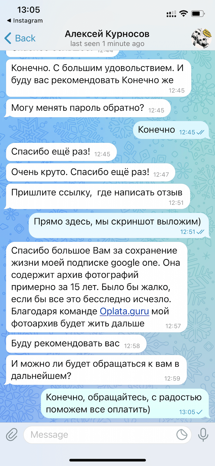 Чат, где наши пользователи публикуют свои отзывы: при необходимости с каждым вы можете связаться напрямую и спросить как всё прошло